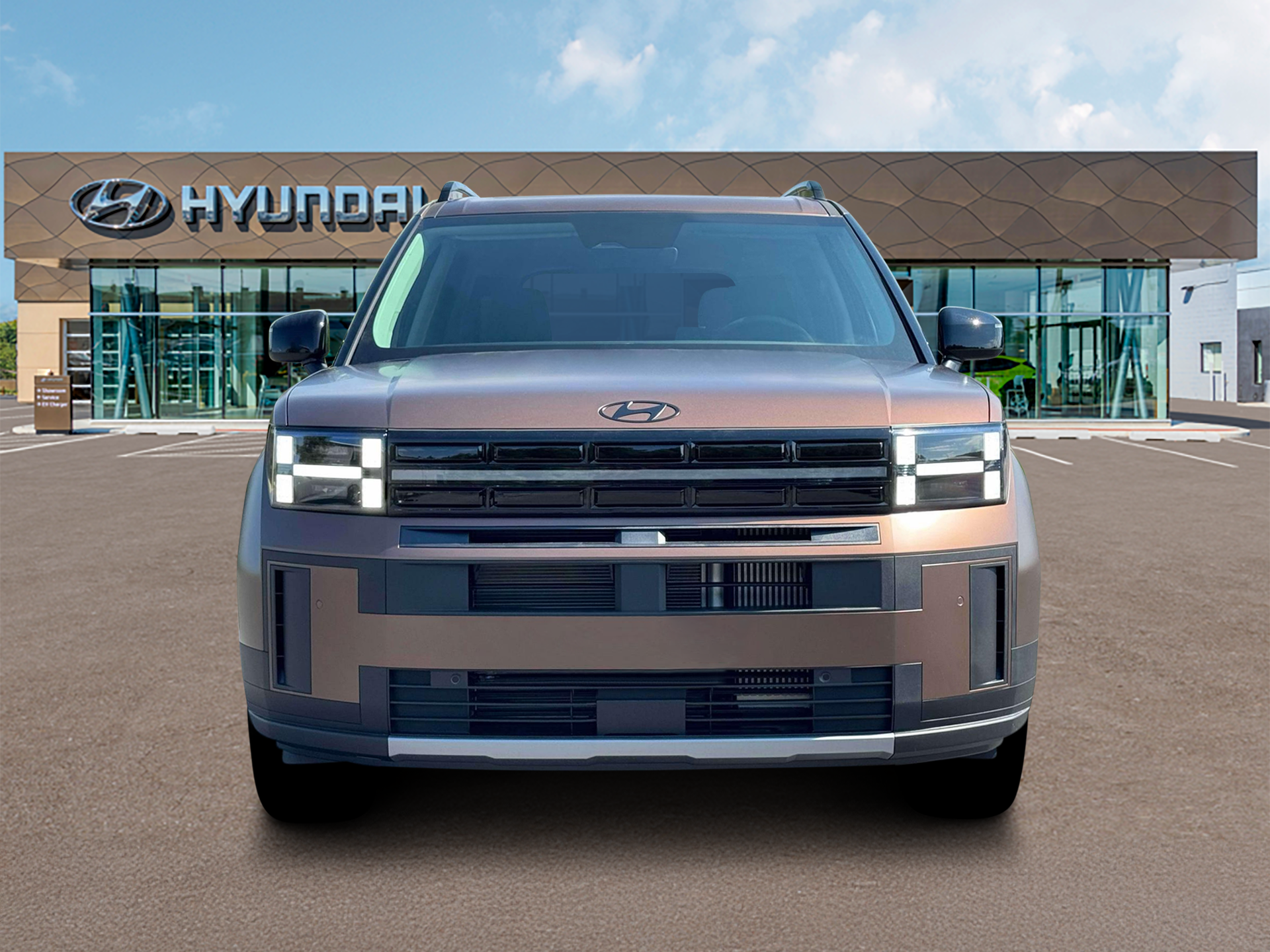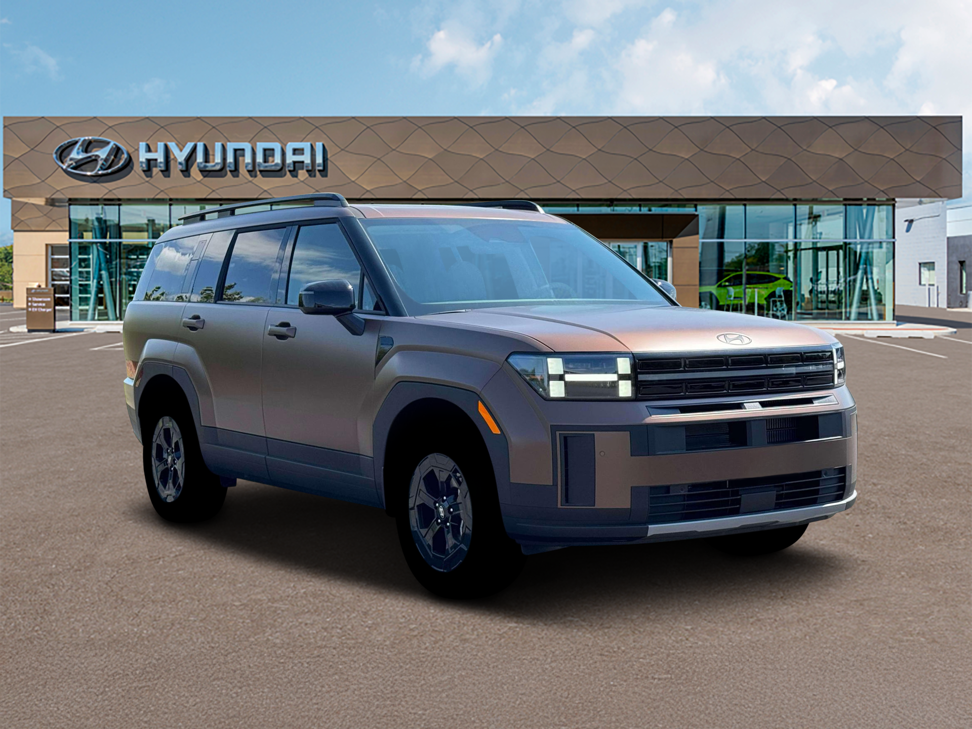Earthy Brass Matte 2026 Hyundai Santa Fe XRT AWD 8-Speed Automatic with SHIFTRONIC 2.5L I4 AWD, Black Premium Synthetic.