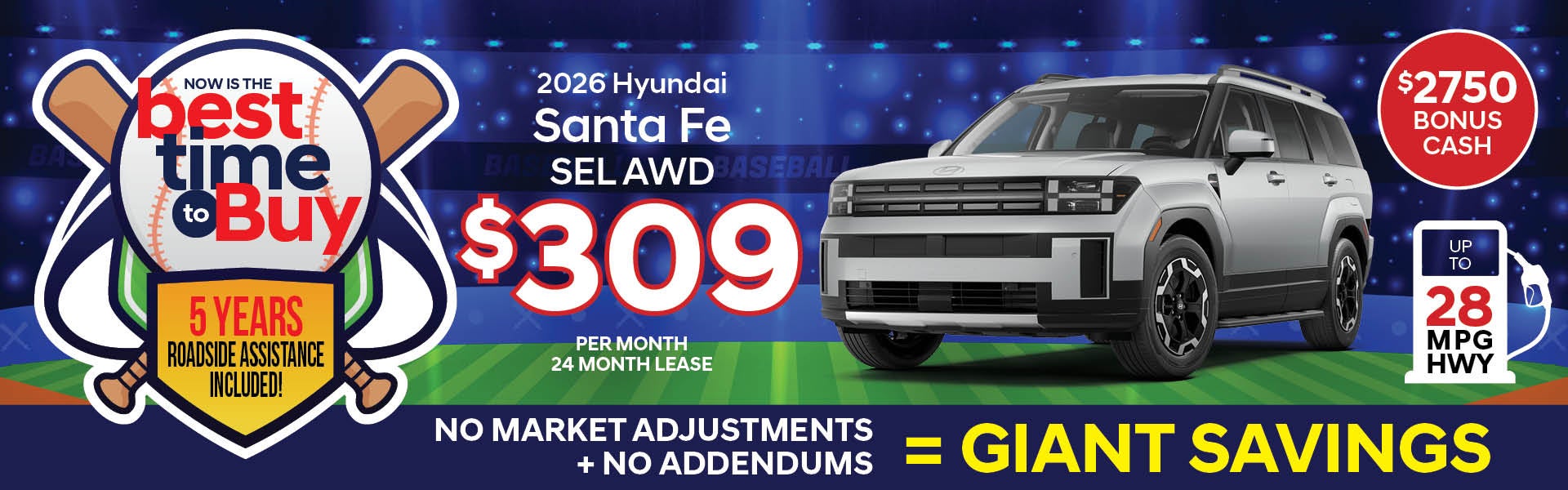 TUCSON, KONA, SONATA, ELANTRA, SANTA FE, PALISADE ALL REBATES AND INCENTIVES ASSIGNED TO DEALER. ALL OFFERS REQUIRE TIER 1 CREDIT APPROVAL THROUGH HMFC. LEASE SUBJECT TO PRIMARY LENDERS APPROVAL. LEASES ARE 7500 MILES PER YEAR. CUSTOMER RESPONSIBLE FOR WEAR AND TEAR AT .20 CENTS ADDITIONAL MILE. LEASES REQUIRES TWENTY-NINE NINETY-FIVE DOWN PAYMENT, FIRST MONTH PAYMENT, SIX HUNDRED FIFTY BANK FEE, PLUS TAX, TAGS DUE AT SIGNING. IN STOCK VEHICLES ONLY. SAME DAY DELIVERY. NOT VALID ON PRIOR DEALS. SEE DEALER FOR COMPLETE DETAILS. OFFERS EXPIRES 4/30/2026.